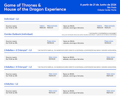 (Experiência exclusiva na Cidade Center Norte apresenta recriações de cenários e adereços inspirados em Game of Thrones e House of the Dragon e uma deliciosa vivência gastronômica em parceria com o Outback Steakhouse)